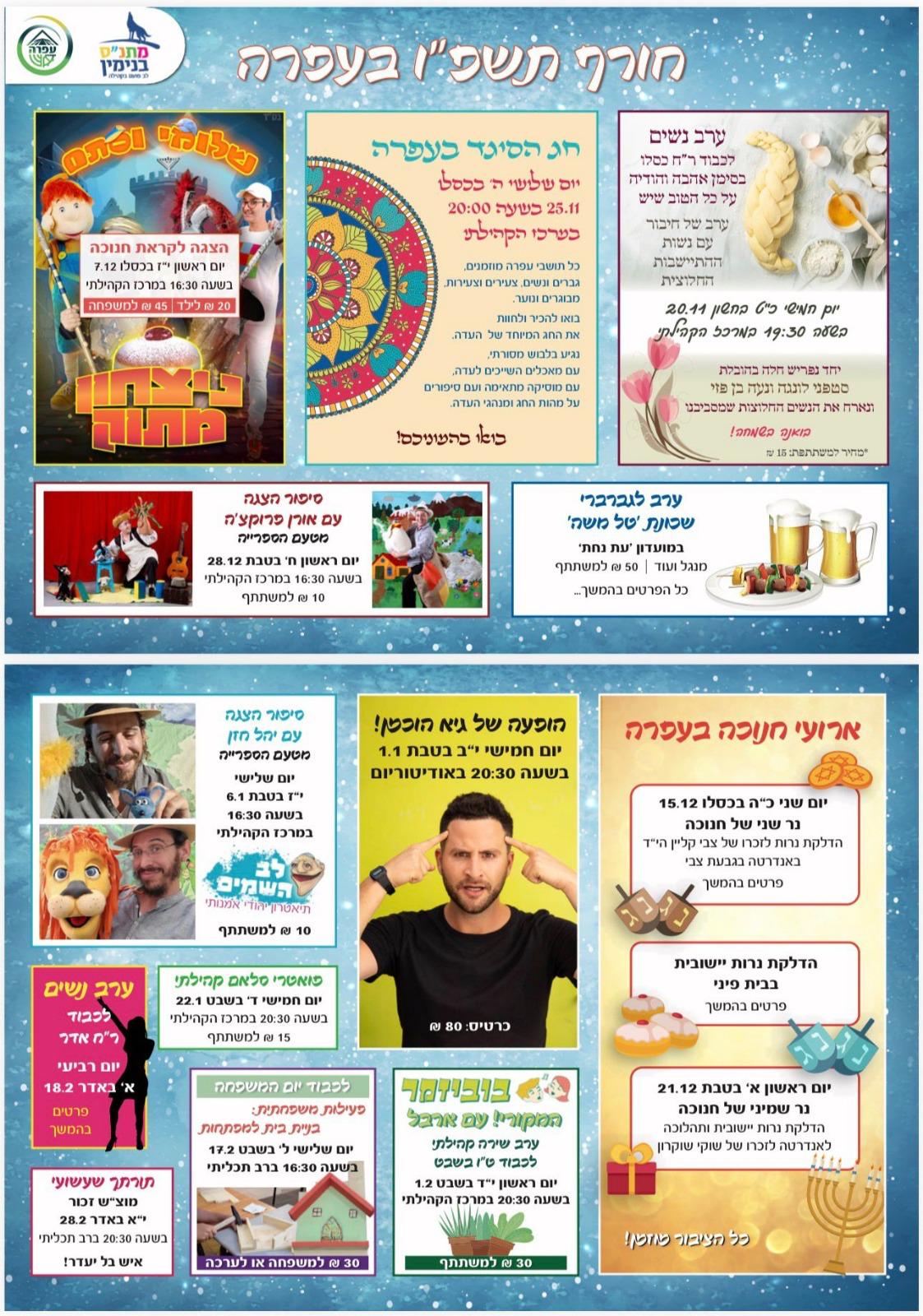 תכנית החורף בעיצומה! תכנית עשירה ומגוונת בהתאמה לאוכלוסיות השונות. שריינו את התאריכים. מצורפת התכנית – אל תפספסו. קישורים להרשמה יתפרסמו בשבוע הבא.